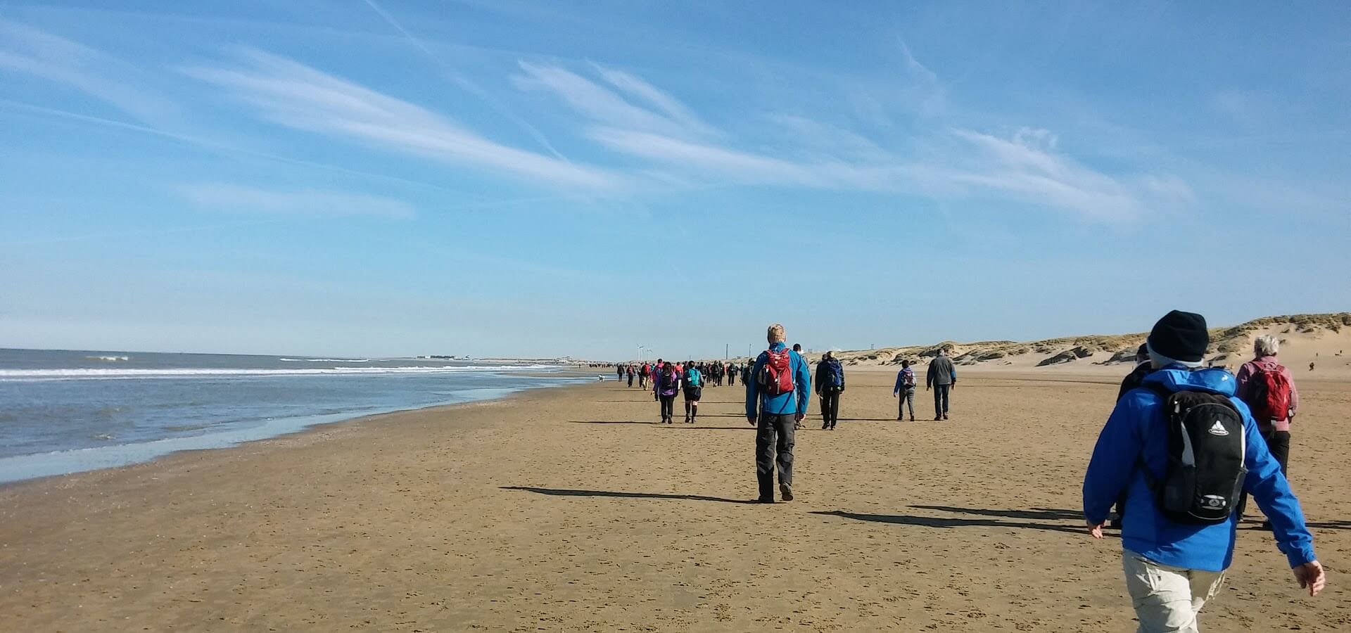 Gisteren wandelden wij de 30 van Zandvoort. Om 9:00 uur gingen wij van start voor de tocht van -de naam zegt het al- 30 hele kilometers. Het is de eerste keer dat wij hier wandelen en wij laten ons verrassen. Aan het weer kan het in ieder geval niet liggen, het was de hele dag allemachtig prachtig (wandel)weer.
