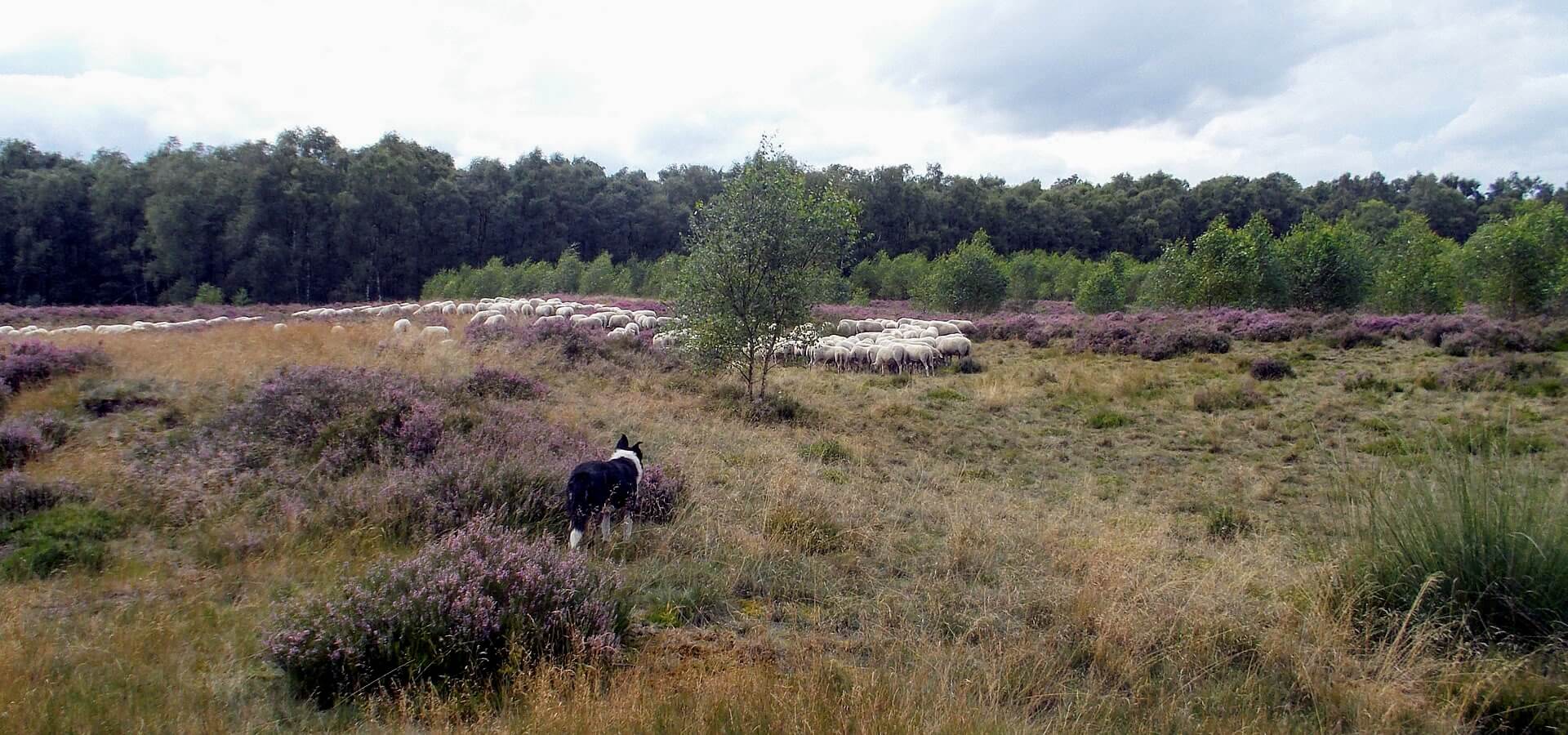 John loopt net even wat sneller en hij heeft zoals altijd de praat met iemand !! Dit keer met de schaapsherderin. Zij is verantwoordelijk voor de schapen die er de heide begrazen. Zo blijft de heide op een natuurlijke manier open. De schaapshond houdt de schapen goed in de gaten. Er ontgaat hem niets en van een afstandje bewaakt hij de kudde.