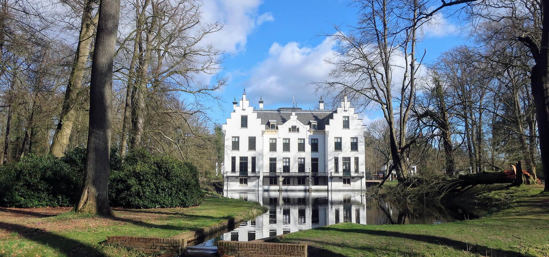 Dan doemt Kasteel Staverden voor ons op. Een imposant wit gebouw, omringd door een brede gracht. De stralende zon zet het kasteel in de schijnwerpers. Op ons gemak slenteren we een rondje om het kasteel en we passeren de Leuvenumse beek en de water molen. Het kasteel is bekend vanwege de witte pauwen, maar die hebben we gemist.